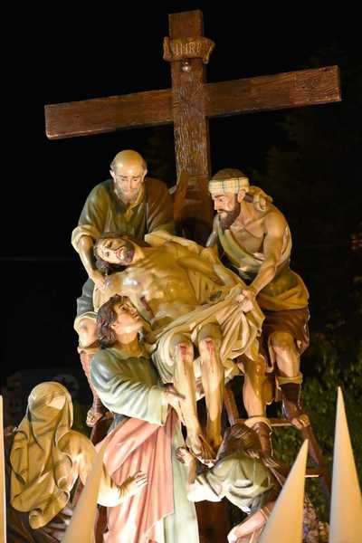 El Paso del Descendimiento de Nuestro Señor Jesucristo data del año 1954, y es obra del escultor valenciano José Díes López. El conjunto escultórico es tallado en madera y está formado por una cruz, dos escaleras, y siete figuras que representan a Cristo, la Virgen María, José de Arimatea, Nicodemo, Juan el Discípulo de Jesús, María Magdalena y María de Cleofás; sobre el monte a los pies de María Magdalena se encuentran la corona de espinas, las tenazas y los tres clavos.